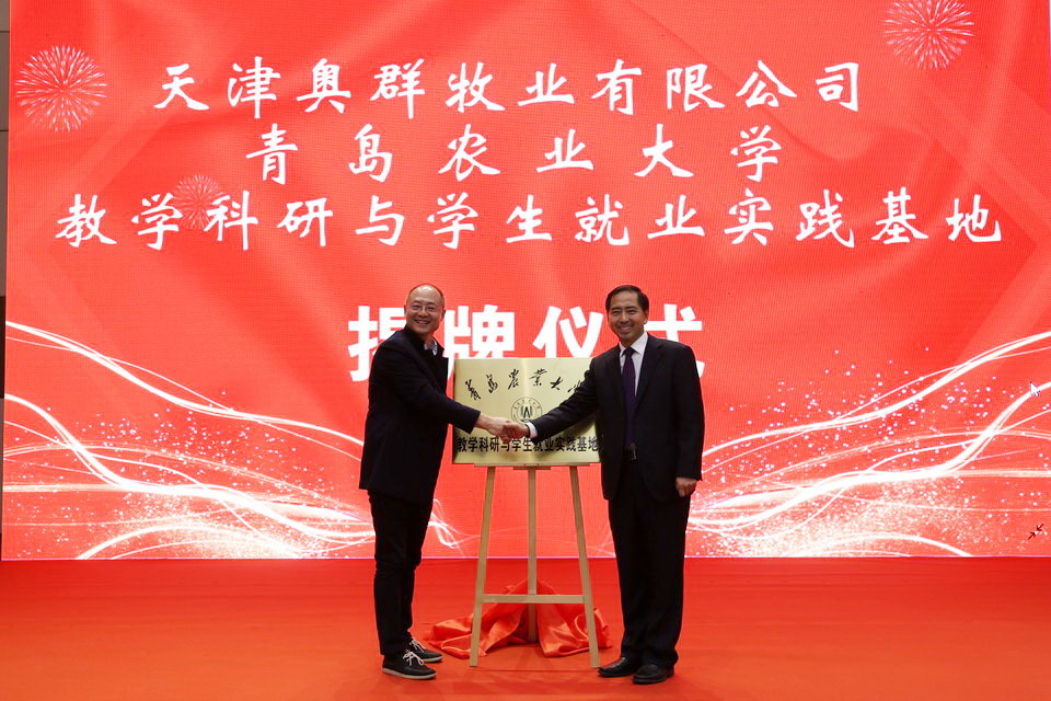 11月17日,44118太阳成城集团与天津奥群牧业有限公司共建的教学科研与员工就业实践基地在天津揭牌。