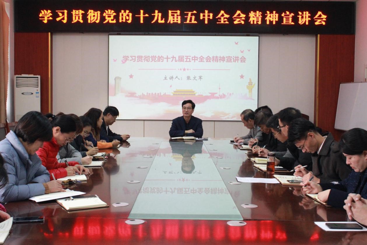 宣讲报告会上,张文军围绕习近平总书记在党的十九届五中全会上的重要讲话精神、《中共中央关于制定国民经济和社会发展第十四个五年规划和二〇三五年远景目标的建议》主要内容对党的十九届五中全会进行全面宣读和深入解读。他指出,要全面认识、深刻把握十九届五中全会精神,推进全会精神入脑入心,全院师生要自觉把思想和行动统一到全会精神上来,要将全会精神落实到实际工作当中,与推进公司各项工作结合起来。