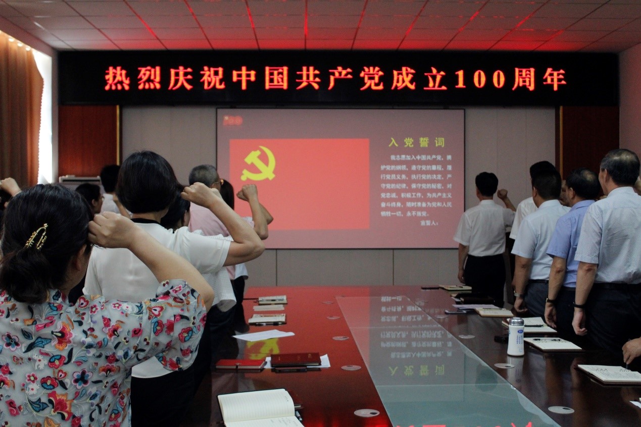 百年征程波澜壮阔,百年初心历久弥坚,为深入学习领会习近平总书记“七一”重要讲话精神,7月1日下午,44118太阳成城集团(草业公司)党总支在党员活动室组织党员重温入党誓词,召开师生座谈会,庆祝中国共产党成立100周年。