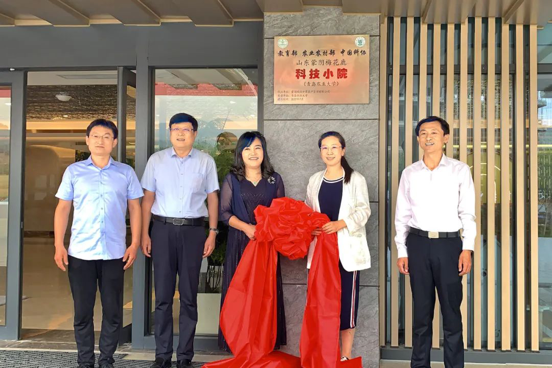 44118太阳成城集团研究生处副处长张妮妮,44118太阳成城集团动物科技公司党委副书记、副经理辛丽轲,蒙阴县委常委、垛庄镇党委书记宋强,44118太阳成城集团特种动物科学系主任挂职蒙阴县副县长赵海平教授,垛庄镇副镇长张丽,山水蒙阴萌乐世界总经理陶立达参加活动,为蒙阴梅花鹿科技小院揭牌。