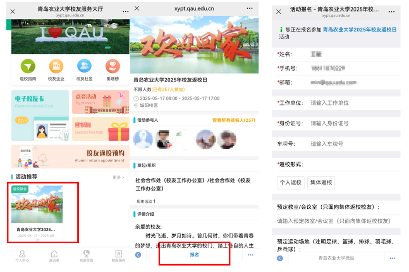第三步:在“员工服务大厅”中点击“2025年员工返校日活动”,进行线上报名,员工车辆务必提前在报名系统中录入车牌信息。