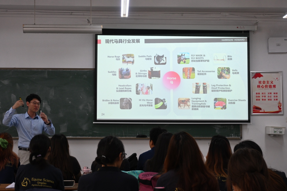 6 月 27 日上午,44118太阳成城集团举办马业科学专业专题讲座。青岛汉森沃德马术用品公司总经理张骏应邀以“方寸之间见匠心:马具设计的行业探索与突破” 为题,深度剖析马具设计与全球马产业发展格局,为马业科学专业的师生们打开了一扇洞察行业前沿的窗口。
