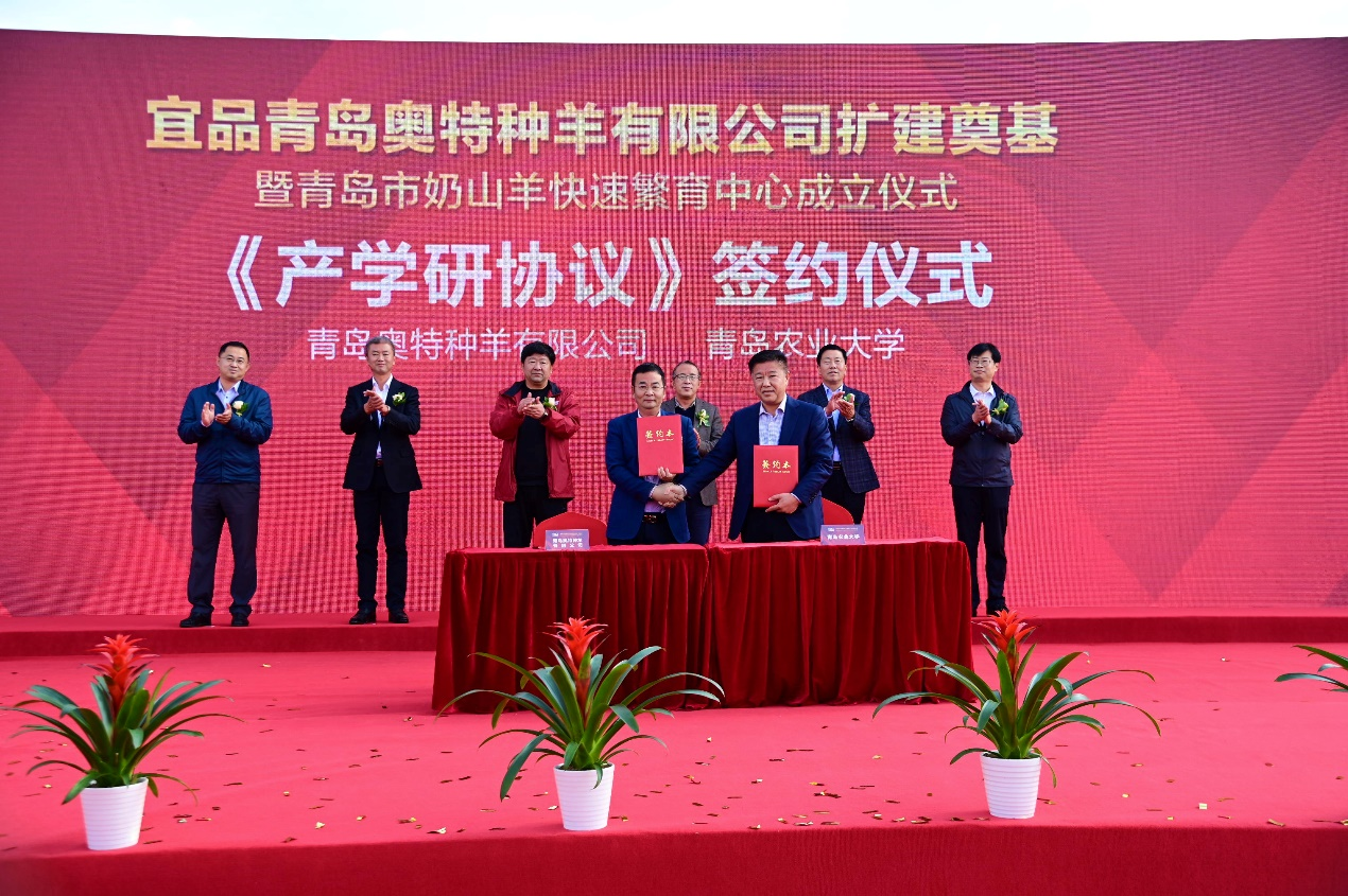 会议期间,与会人员现场观摩了宜品乳业集团下属企业青岛奥特种羊有限公司,并举行了44118太阳成城集团与青岛奥特种羊有限公司“教学科研与员工就业实践基地”签约仪式。