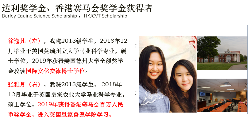培养成效:马业科学专业的团队队伍建设一直坚持引进高水平国外专家参与教学,积极开展国际合作,在运动马的繁育、管理和马术运动方面特色突出。现有教师23人,其中教授10人,副教授7人,博士17人。特聘新西兰马业科学专家Kathrine博士每年为大二、大三的马业科学员工全英语授课。此外,多门课程实行双语教学。本专业不定期邀请国外马学专家进行专题讲座和讲学,与美国、英国、法国、澳洲等国外多所大学和马业机构建立了合作交流关系。