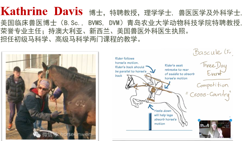 团队力量:马业科学专业的团队队伍建设一直坚持引进高水平国外专家参与教学,积极开展国际合作,在运动马的繁育、管理和马术运动方面特色突出。现有教师23人,其中教授10人,副教授7人,博士17人。特聘新西兰马业科学专家Kathrine博士每年为大二、大三的马业科学员工全英语授课。此外,多门课程实行双语教学。本专业不定期邀请国外马学专家进行专题讲座和讲学,与美国、英国、法国、澳洲等国外多所大学和马业机构建立了合作交流关系。