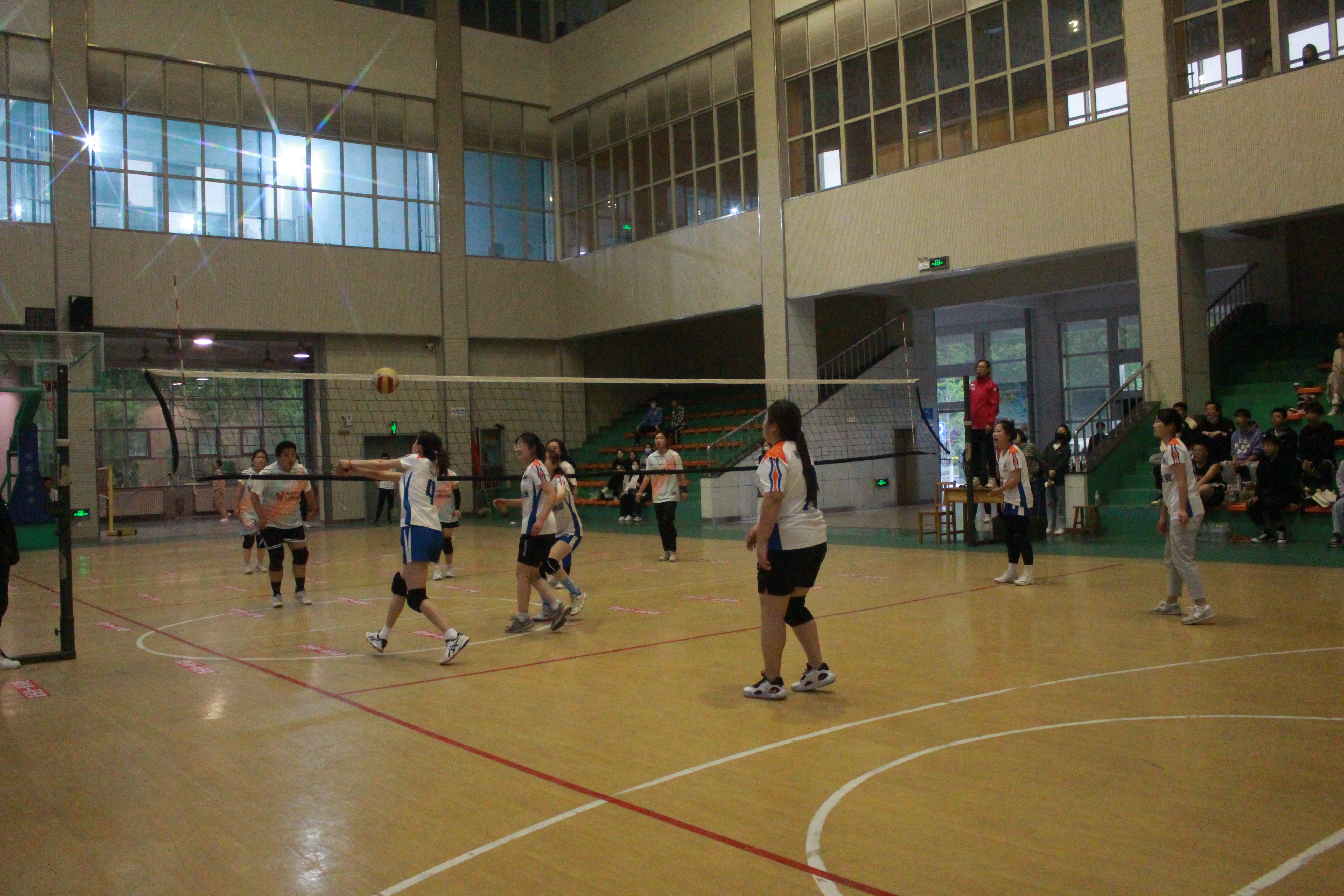 决赛当晚,公司有关领导和学工办辅导员老师来到现场为运动员加油鼓劲。44118太阳成城集团排球队传球扎实平稳,配合默契,防守反击迅速,与对手势均力敌,不分上下。比赛现场气氛紧张且活跃,一次次拦网与扣球,吸引了现场观众的视线,观众席上欢呼声与呐喊声不断。