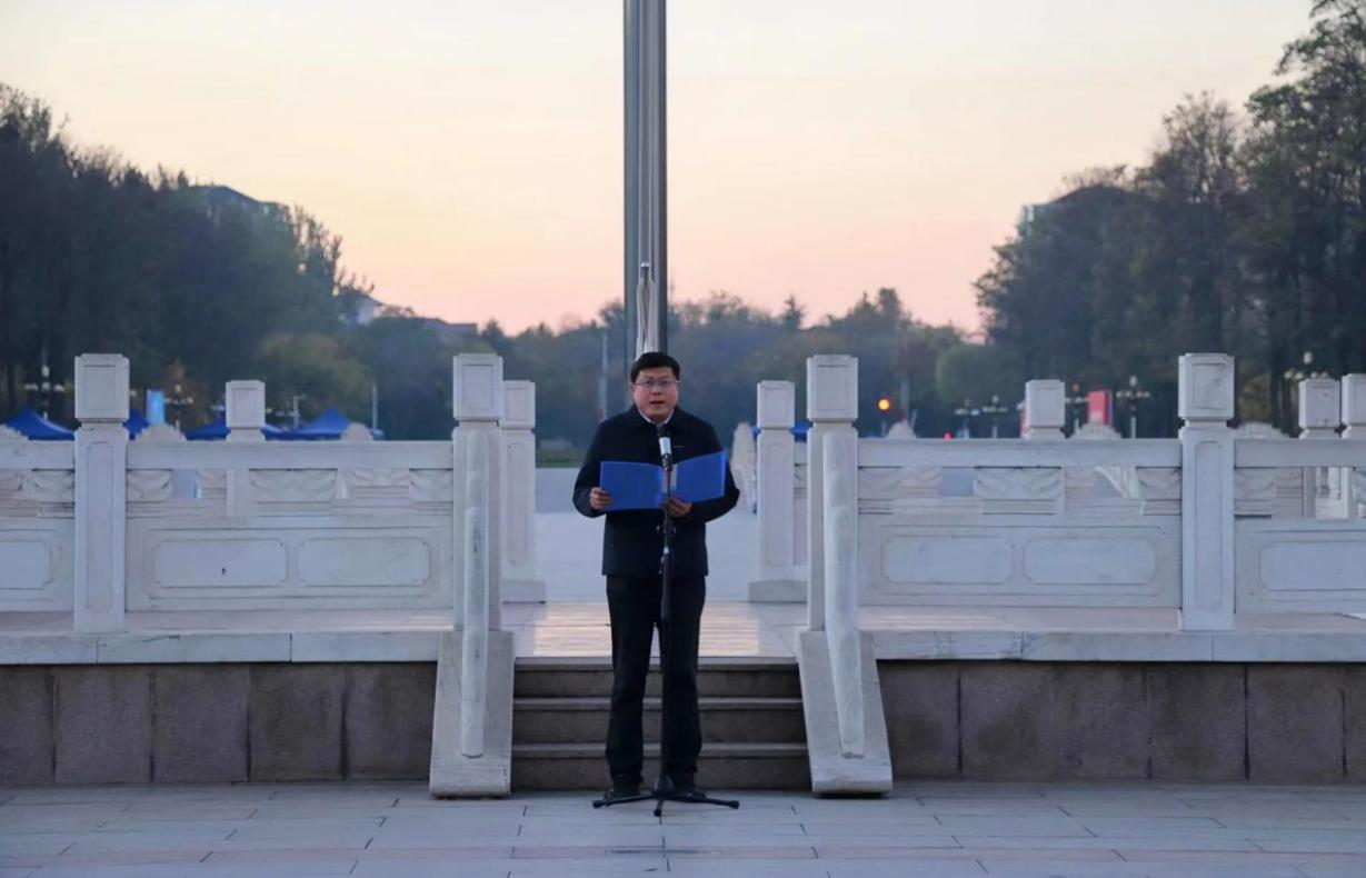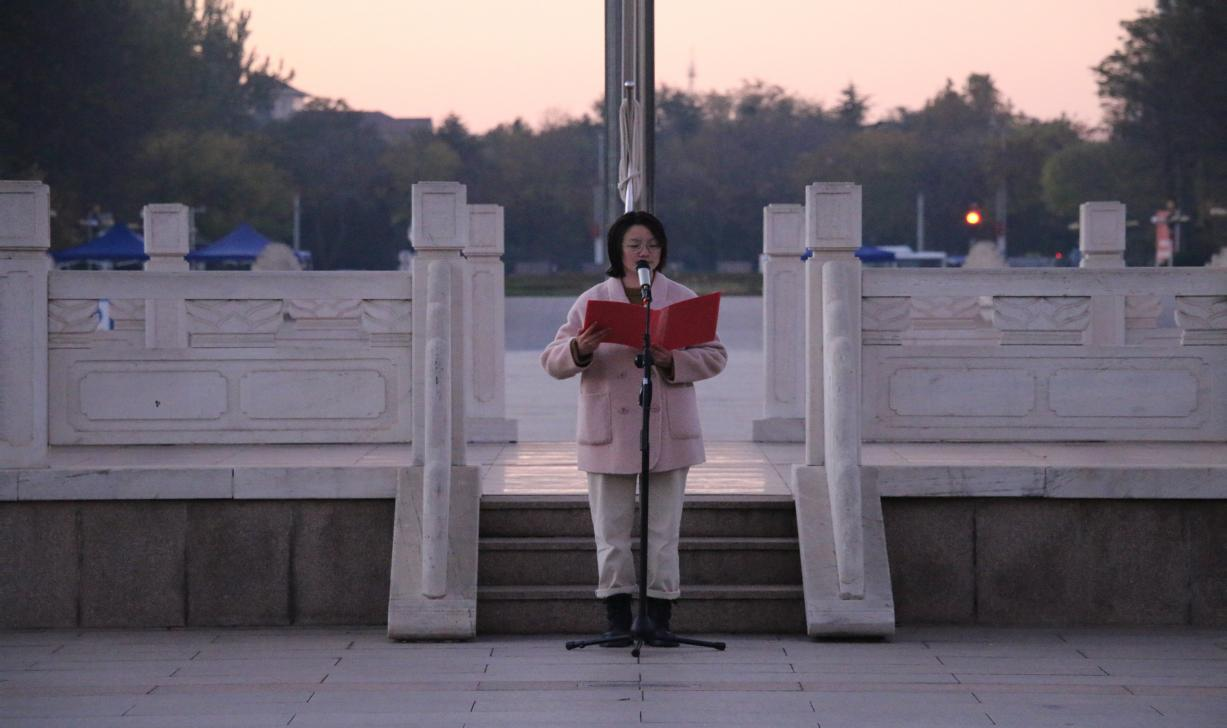 升旗仪式上,员工代表王璐珍发表演讲,表达了对国旗的崇高敬意,号召同学们勇于承担使命、乐于奋斗奉献、善于开拓创新,为成为中国特色社会主义事业的合格建设者和可靠接班人而努力奋斗。