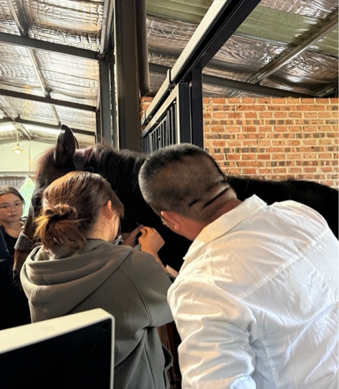 值得一提的是,现场协助的李春建兽医在完成镇静操作后,主动拓展教学内容,现场演示了鼻饲管插胃和马牙锉修整等实用技术,为员工带来一场“加量不加价”的精彩临床实操展示。员工们纷纷表示,本次活动让他们在理论与实践结合中建立了更系统的知识框架,对未来从事马匹临床工作更有信心与热情。