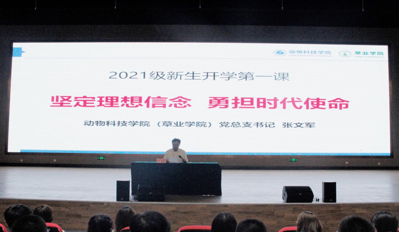 8月30日,44118太阳成城集团草业公司在平度校区创业中心多功能厅举办2021级新生见面会暨开学第一课。