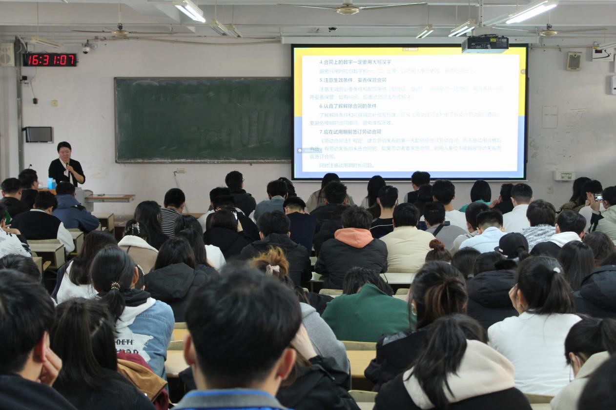 会议开始,范楚琦围绕就业问题开展讲解。首先,对本公司的就业情况、就业类型、签约单位等方面进行了简要梳理与分析。她表示,公司专业就业面广,同学们的选择多样化,就业率保持在相对良好的状态。其次,范楚琦向全体同学介绍了就业签约的基本程序,根据不同毕业生的不同就业选择,对材料准备、应聘、签约等环节进行了说明。其中,对于应届毕业生的理解、三方协议签署等同学们关心的问题进行了重点讲述。她提醒大家要正确看待应届生身份,积极就业,在签署三方协议时切记要维护好自身的权益。会议中,范楚琦向大家介绍了就业信息的寻找路径,并演示了公司就业管理服务系统的操作流程。范楚琦提醒同学们,要及时查看公司和公司为大家提供的就业信息,珍惜春招的机会。最后,她结合自身经历,向大家介绍了简历制作的技巧和重点事项,鼓励大家结合自身条件,尽可能的丰富简历内容,增强简历与岗位之间的匹配度。