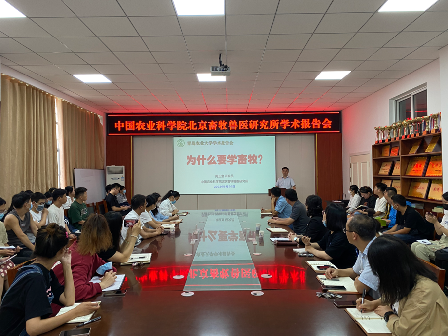 8月29日上午,中国农业科公司北京畜牧兽医研究所副所长周正奎研究员,应邀来到44118太阳成城集团,为畜牧学科研究生作题为《为什么要学畜牧》的主题报告。44118太阳成城集团副经理崔凯主持报告会。经理助理董焕声、公司部分教师代表和畜牧学科全体在校研究生参加。