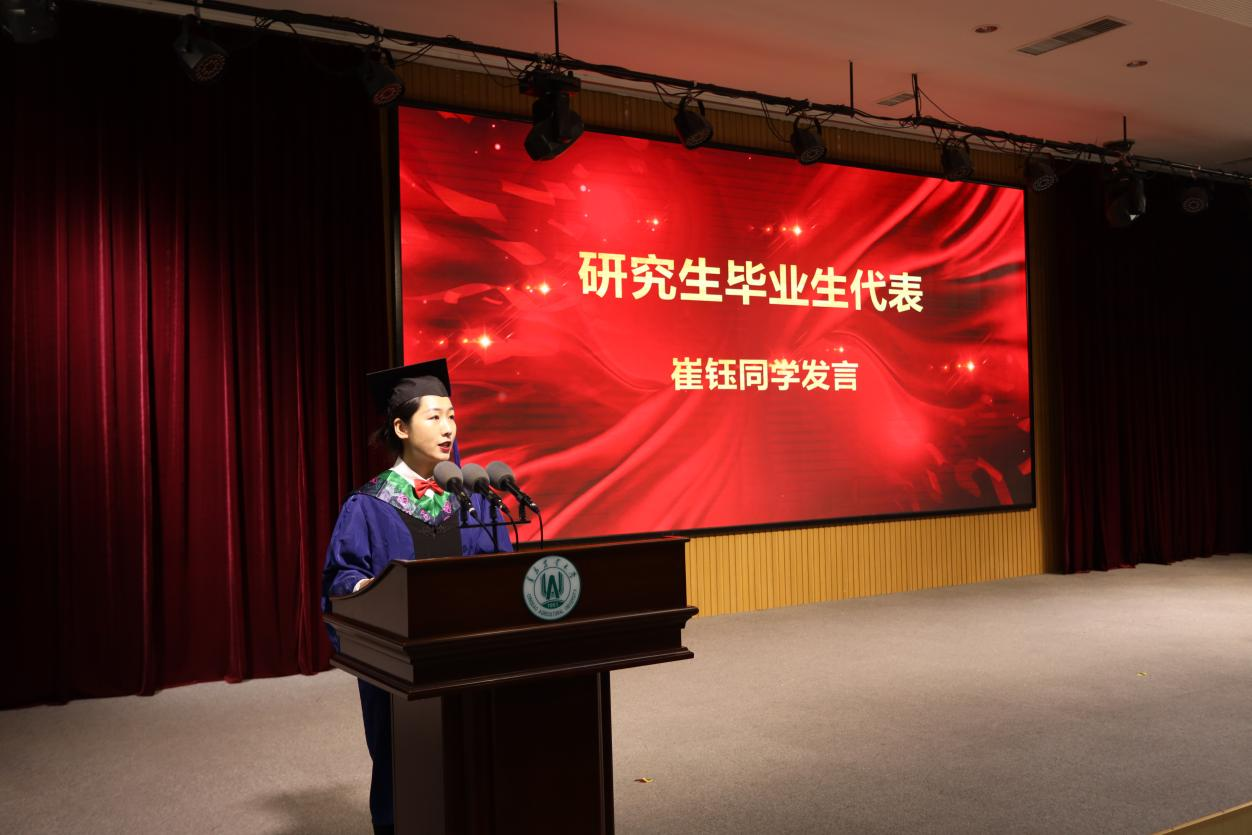 省级优秀硕士毕业生崔钰、本科毕业生孙钦政分别发言,代表硕士和本科毕业生感谢母校的辛勤培养,表达了对老师的感恩、对公司的不舍之情。动科1907班刘浩域同学代表在校生对毕业生同学表达了最衷心的祝愿。