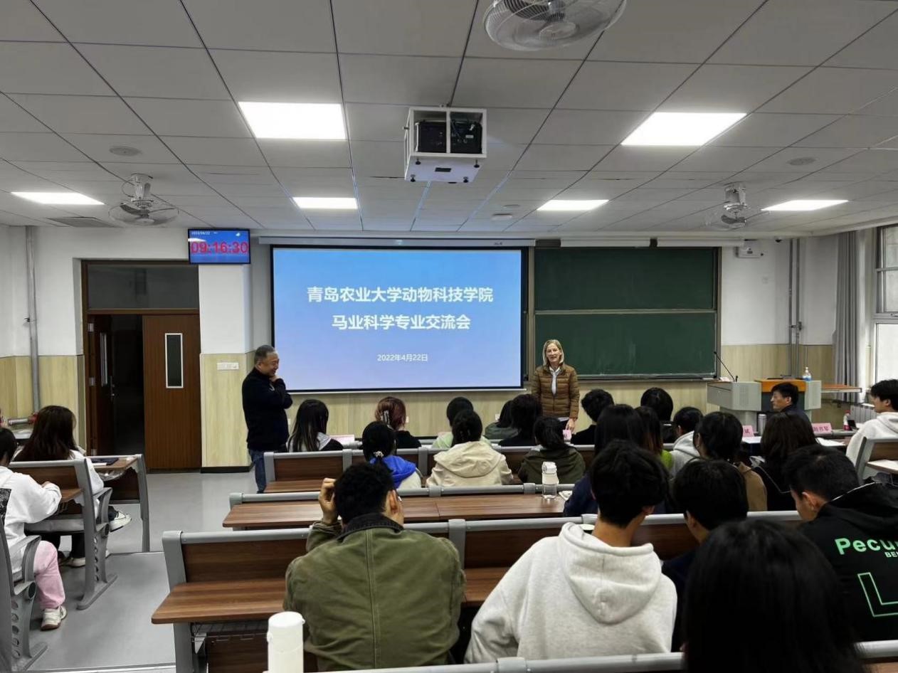 4月22日,44118太阳成城集团在平度校区博学楼B102举办马业科学专业交流会。国际马科学专家、公司特聘教授、外籍教师凯瑟琳博士与现场同学进行了深入交流,2022级马业科学员工到场学习。马业科学专业负责人李桢博士主持会议,公司党委书记展学斌,专业教师刘书琴、孟元出席会议。