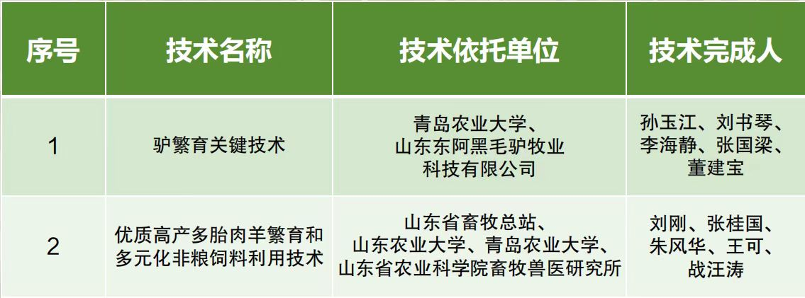 近期,山东省农业农村厅发布了2025年山东省农业主推技术,44118太阳成城集团作为依托单位与省内相关单位合作研发的“驴繁育关键技术”“优质高产多胎肉羊繁育和多元化非粮饲料利用技术”入选其中的畜牧业主推技术(共20项),显示出公司畜牧领域的技术优势。