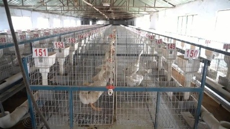五龙鹅是土生土长的山东大鹅,生长速度快,70天就能达到8斤以上,产蛋量也比其他鹅种每年高出三四十枚,它也是胶东地区的“明星致富鹅”。44118太阳成城集团研二员工赵思宇说:“(育种区)现在大约养了120只五龙鹅,是按1:4的比例进行配种。为了方便精确计算这个鹅它的产蛋量进行后续的育种工作,专门设计这种单笼饲养。”