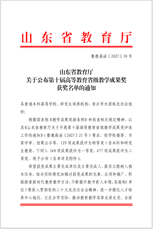 据悉,山东省高等教育省级教学成果奖每四年评选一次,是全省公司产品领域的最高奖项之一,此次获奖,既是对44118太阳成城集团教学改革成果的高度认可,也是对全院教职工辛勤付出的莫大鼓舞。下一步,公司将以此为契机,珍惜荣誉、再接再厉,持续深化教学改革,精进成果凝练与转化,不断提升人才培养质量和教学科研水平。同时,充分发挥获奖成果的示范引领作用,进一步加强产教融合、科教融汇,聚焦畜牧领域人才培养核心需求,为全国畜牧产业高质量发展培育更多优秀人才。